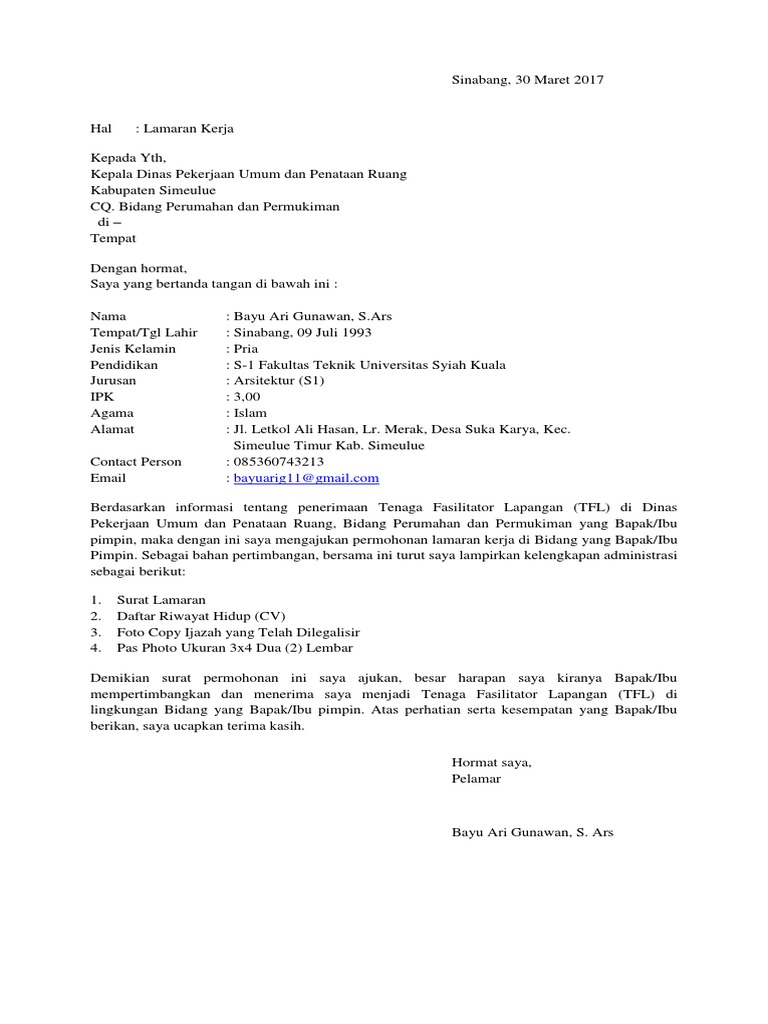 Contoh surat lamran kerja simple. Contoh surat lamaran kerja merupakan surat yang ditulis baik menggunakan tangan maupun diketik oleh si pelamar yang akan mengajukan pekerjaan di suatu perusahaan. Surat lamaran kerja merupakan salah satu syarat untuk mendapatkan pekerjaan yang ingin anda dapatkan. Tahukah anda, surat adalah salah satu sarana berkomunikasi yang bertujuan untuk namun dalam dunia kerja, terutama di indonesia, masih banyak perusahaan yang menggunakan surat surat lamaran kerja tergolong ke dalam surat dinas atau resmi, sehingga. Demikian info dari saya kali ini untuk contoh surat lamaran kerja pegawai honorer kantor pemerintahan, semoga bermanfaat dan jangan lupa bagikan ke sosial media lain agar teman teman dan orang lain pun bisa. Pendaftaran cpns pemerintah kabupaten yogyakarta formasi tahun 2020. Surat lamaran kerja adalah surat yang digunakan sebagai legalitas untuk mengajukan permohonan mendapatkan pekerjaan pada perusahaan yang dituju. Contoh surat lamaran kerja honorer dinas perhubungan sebagai akunting. Meisya siregar tempat,tanggal lahir : Tuliskan juga nilai apa yang anda miliki. Contoh surat lamaran kerja di perusahaan umum i. Kedua pihak yang tersebut di atas bersepakat untuk mengadakan perjanjian kerjasama usaha dengan ketentuan yang diatur dengan pasal berikut Mungkin anda masih melihat lowongan pekerjaan dan mencari pekerjaan yang sesuai dengan anda.